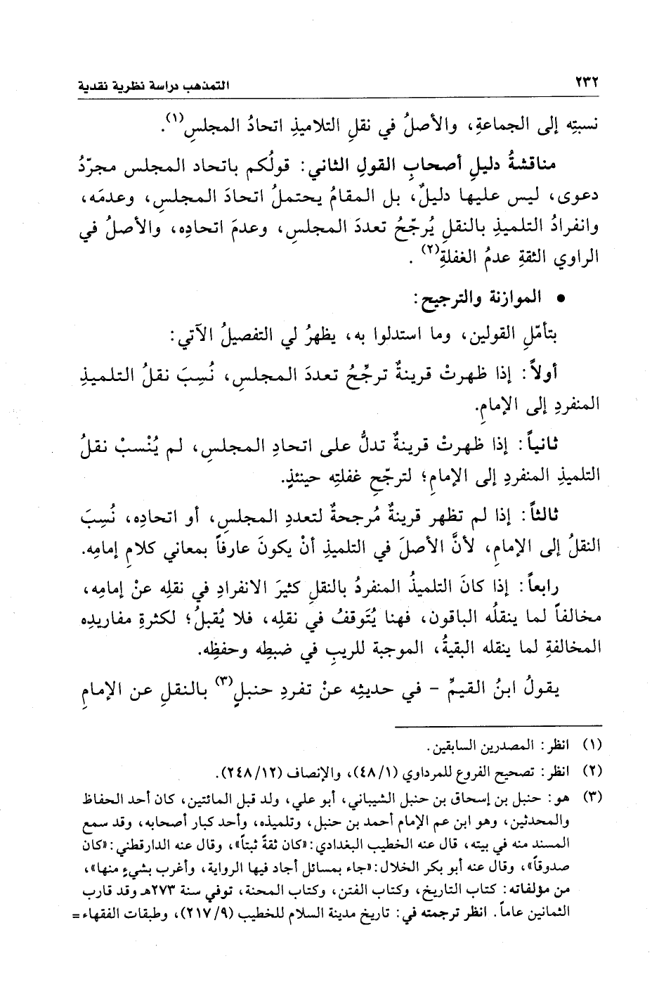 ثالثًا: إذا لم تظهر قرينةٌ مُرجحةٌ لتعددِ المجلسِ، أو اتحادِه، نُسِبَ النقلُ إلى الإمامِ، لأنَّ الأصلَ في التلميذِ أنْ يكونَ عارفًا بمعاني كلامِ إمامِه.