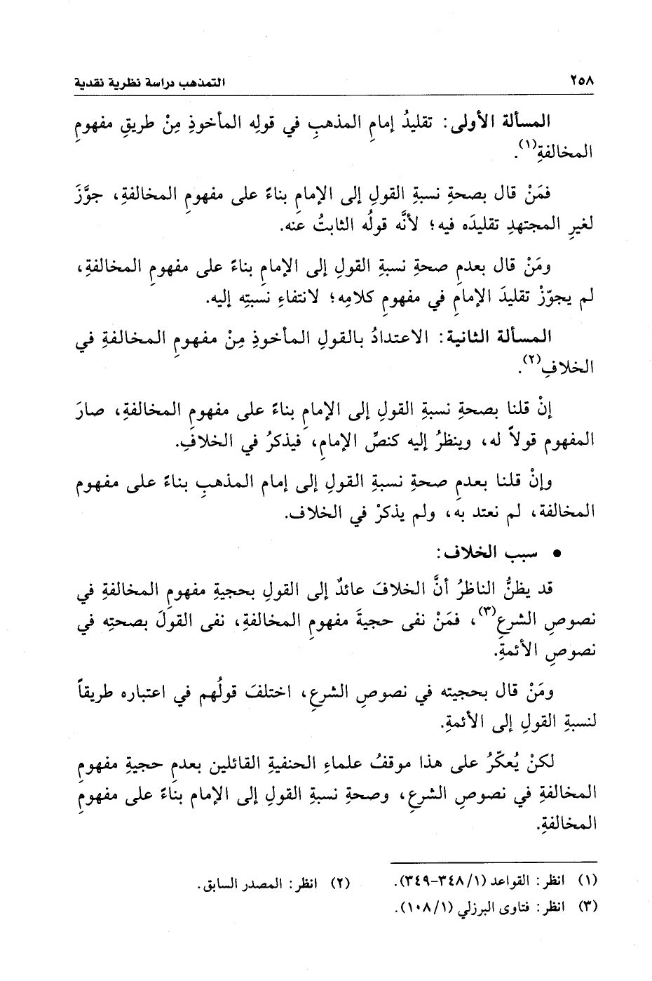 قد يظنُّ الناظرُ أن الخلافَ عائدٌ إلى القولِ بحجيةِ مفهومِ المخالفةِ في نصوصِ الشرعِ (¬٣)، فمَنْ نفى حجيةَ مفهومِ المخالفةِ، نفى القولَ بصحتِه في نصوصِ الأئمةِ.