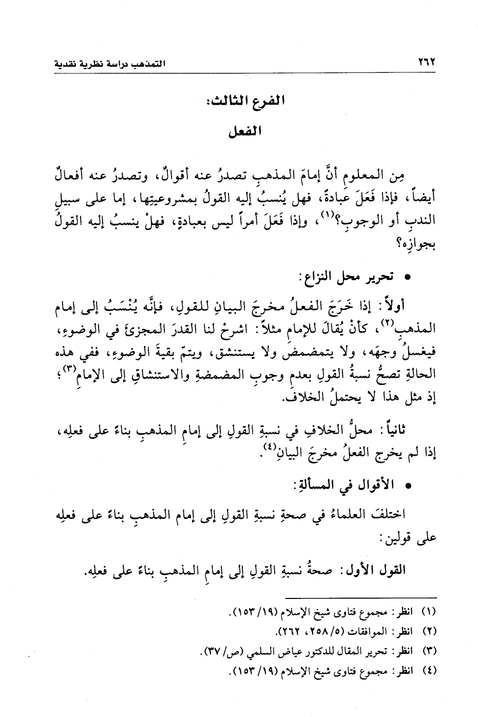 مِن المعلومِ أنَّ إمامَ المذهبِ تصدرُ عنه أقوالٌ، وتصدرُ عنه أفعالٌ أيضًا، فإذا فَعَلَ عبادةً، فهل يُنسبُ إليه القولُ بمشروعيتِها، إما على سبيلِ الندبِ أو الوجوبِ؟ (¬١)، وإذا فَعَلَ أمرًا ليس بعبادةٍ، فهلْ ينسبُ إليه القولُ بجوازِه؟