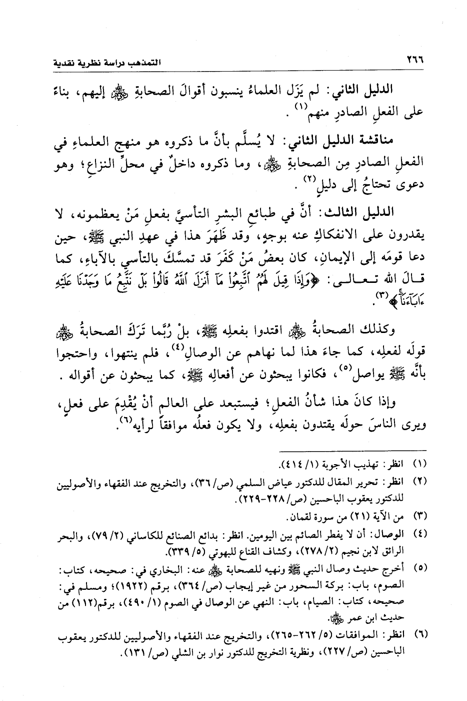 مناقشة الدليل الثاني: لا يُسلَّم بأنَّ ما ذكروه هو منهج العلماءِ في الفعلِ الصادرِ مِن الصحابةِ - رضي الله عنهم -، وما ذكروه داخلٌ في محل النزاع؛ وهو دعوى تحتاجُ إلى دليلٍ (¬٢).