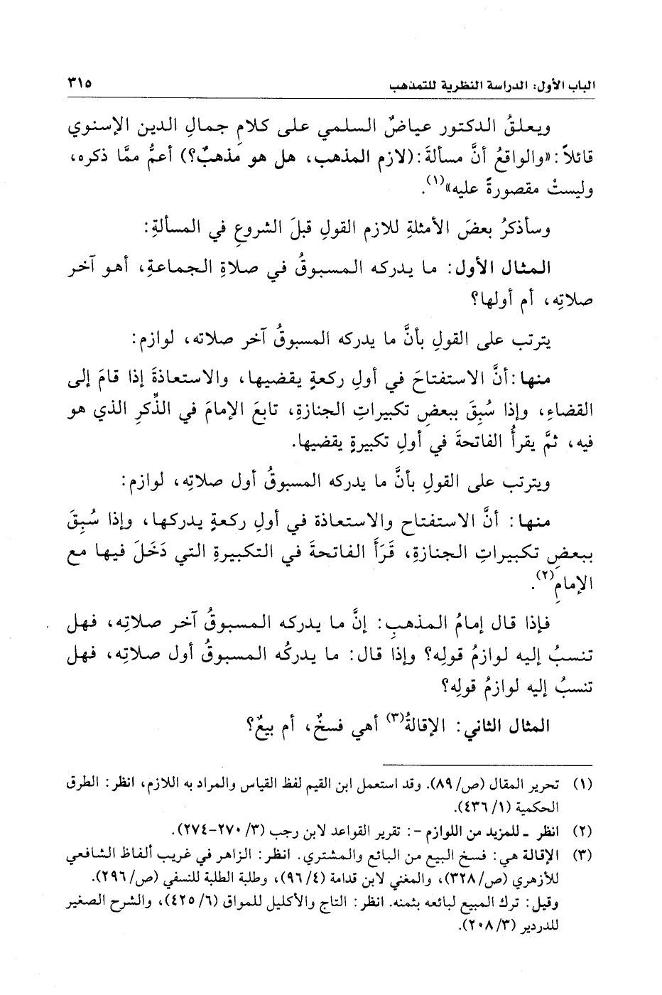 فإِذا قال إِمامُ المذهبِ: إِنَّ ما يدركه المسبوقُ آخر صلاتِه، فهل تنسبُ إِليه لوازمُ قولِه؟ وإِذا قال: ما يدركُه المسبوقُ أول صلاتِه، فهل تنسبُ إِليه لوازمُ قولِه؟