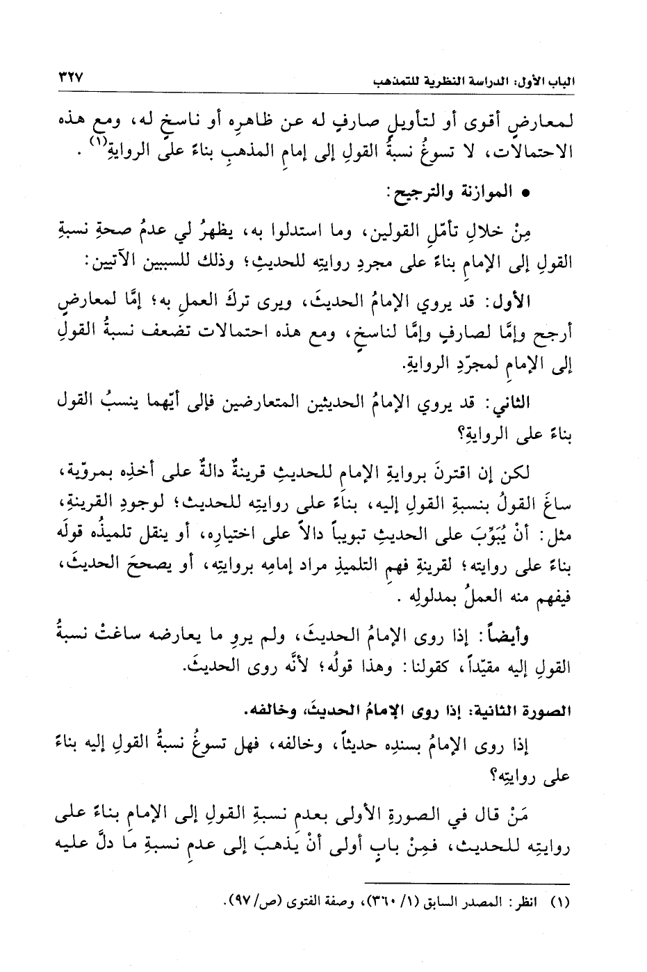 لمعارضٍ أقوى أو لتأويلٍ صارفٍ له عن ظاهرِه أو ناسخٍ له، ومع هذه الاحتمالات، لا تسوغُ نسبةُ القولِ إِلى إِمامِ المذهبِ بناءً على الروايةِ (¬١).
