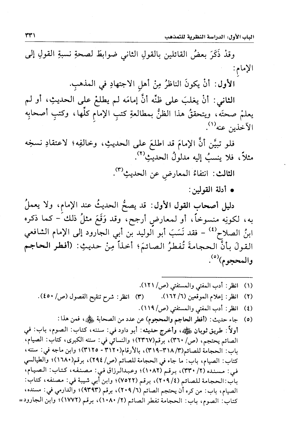 الأول: أنْ يكونَ الناظرُ مِنْ أهلِ الاجتهادِ في المذهبِ.