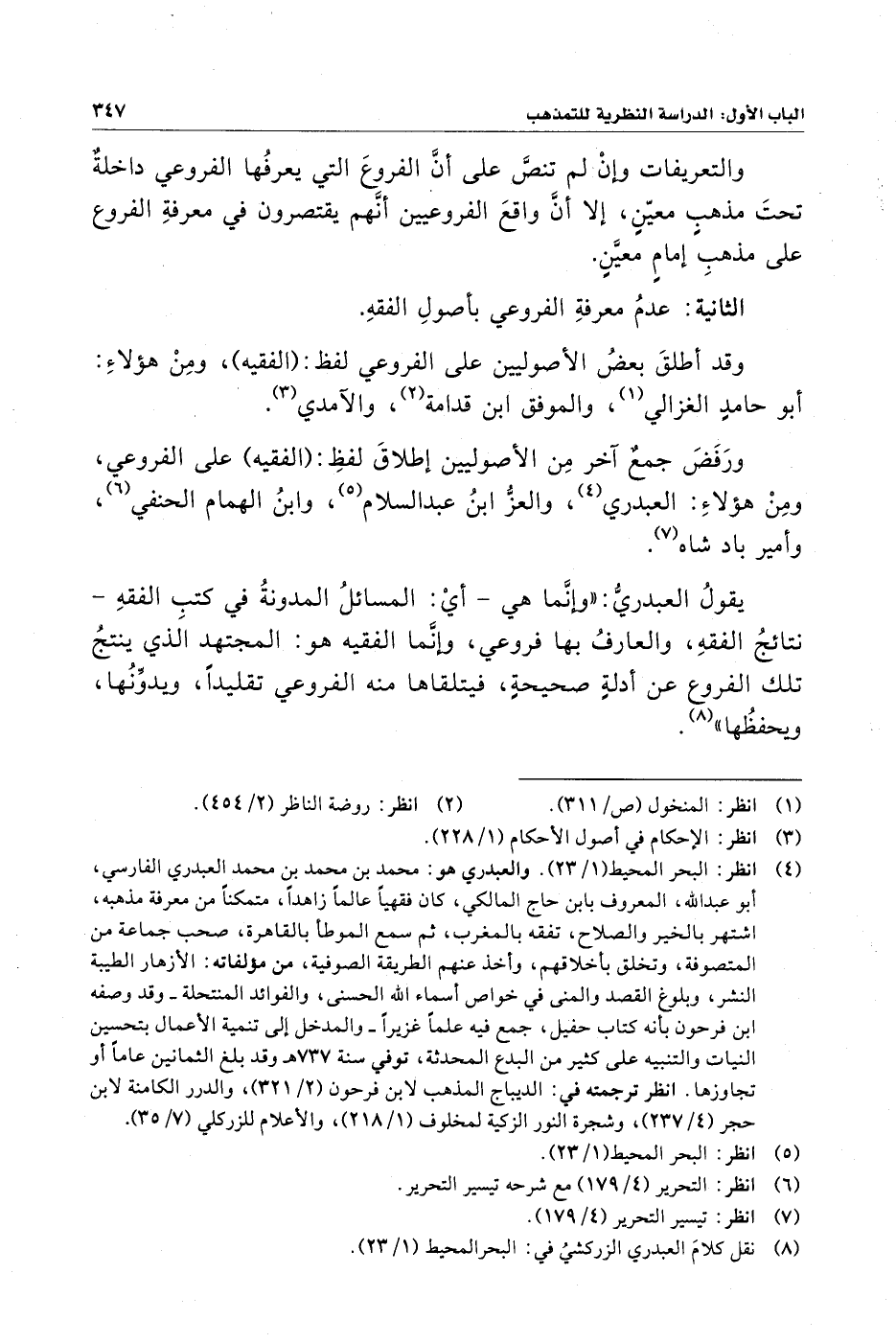 ورَفَضَ جمعٌ آخر مِن الأصوليين إطلاقَ لفظِ: (الفقيه) على الفروعي، ومِنْ هؤلاءِ: العبدري (¬٤)، والعزُّ بنُ عبد السلام (¬٥)، وابنُ الهمام الحنفي (¬٦)، وأمير باد شاه (¬٧).