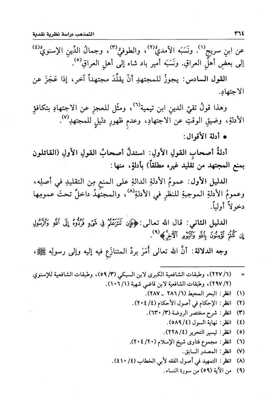القول السادس: يجوزُ للمجتهدِ أنْ يقلِّدَ مجتهدًا آخر، إذا عَجَزَ عن الاجتهادِ.