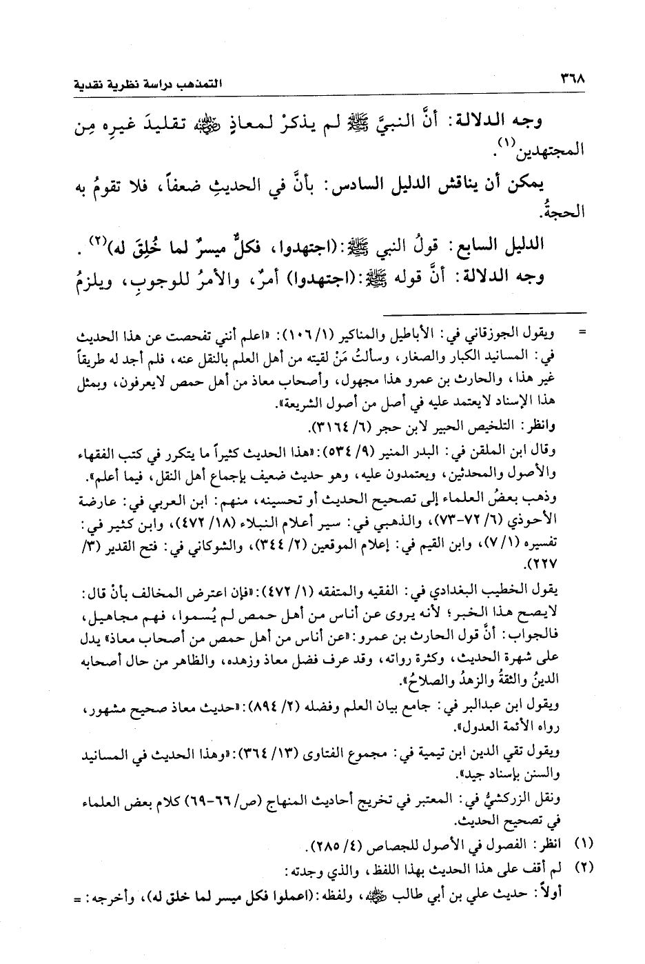 ويقول ابن عبد البر في: جامع بيان العلم وفضله (٢/ ٨٩٤): "حديث معاذ صحيح مشهور، رواه الأئمة العدول".