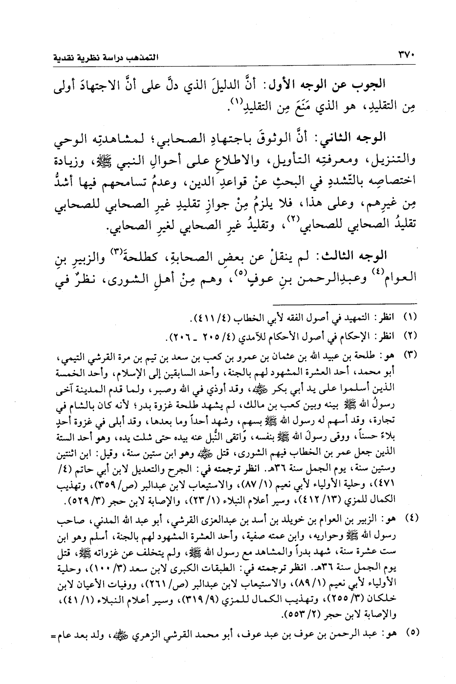 الوجه الثالث: لم ينقلْ عن بعضِ الصحابةِ، كطلحةَ (¬٣) والزبيرِ بنِ العوام (¬٤) وعبدِ الرحمن بنِ عوفٍ (¬٥)، وهم مِنْ أهلِ الشورى، نظرٌ في