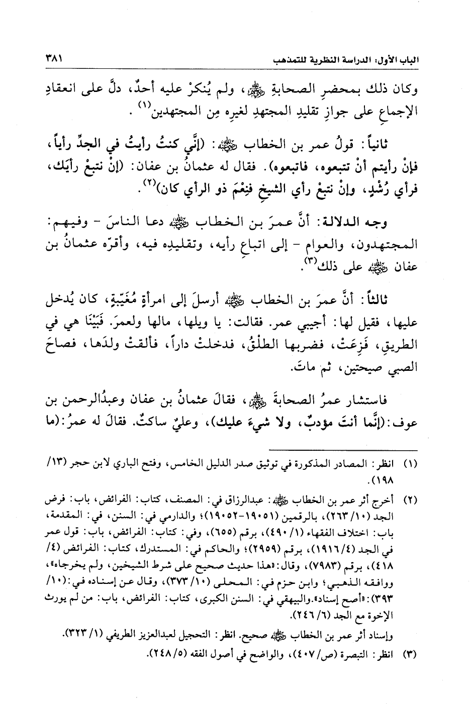 وجه الدلالة: أنَّ عمرَ بن الخطاب - رضي الله عنه - دعا الناسَ - وفيهم: المجتهدون، والعوام - إلى اتباعِ رأيه، وتقليدِه فيه، وأقرّه عثمانُ بن عفان - رضي الله عنه - على ذلك (¬٣).