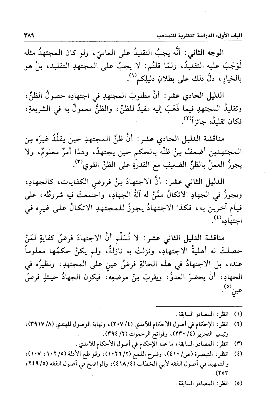 مناقشة الدليل الثاني عشر: لا نسَلِّم أنَّ الاجتهادَ فرضُ كفايةٍ لمَنْ حصلتْ له أهليةُ الاجتهادِ، ونزلتْ به نازلةٌ، ولم يكنْ حكمُها معلومًا عنده، بل الاجتهادُ في هذه الحالةِ فرضُ عينٍ على المجتهدِ، ونظيرُه في الجهادِ، أنْ يحضرَ العدوُّ، ويقربَ مِنْ موضعِه، فيكون الجهاد حينئذٍ فرضَ عينٍ (¬٥).