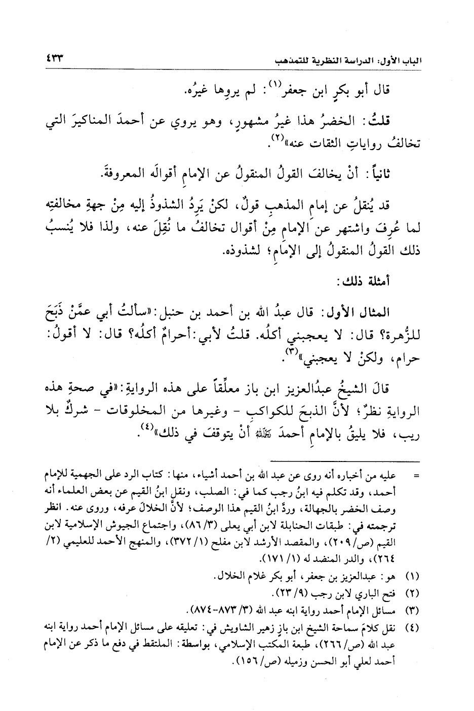 (¬٤) نقل كلامَ سماحة الشيخ ابن بازٍ زهير الشاويش في: تعليقه على مسائل الإمام أحمد رواية ابنه عبد الله (ص/ ٢٦٦)، طبعة المكتب الإسلامي، بواسطة: الملتقط في دفع ما ذكر عن الإمام أحمد لعلي أبو الحسن وزميله (ص/ ١٥٦).