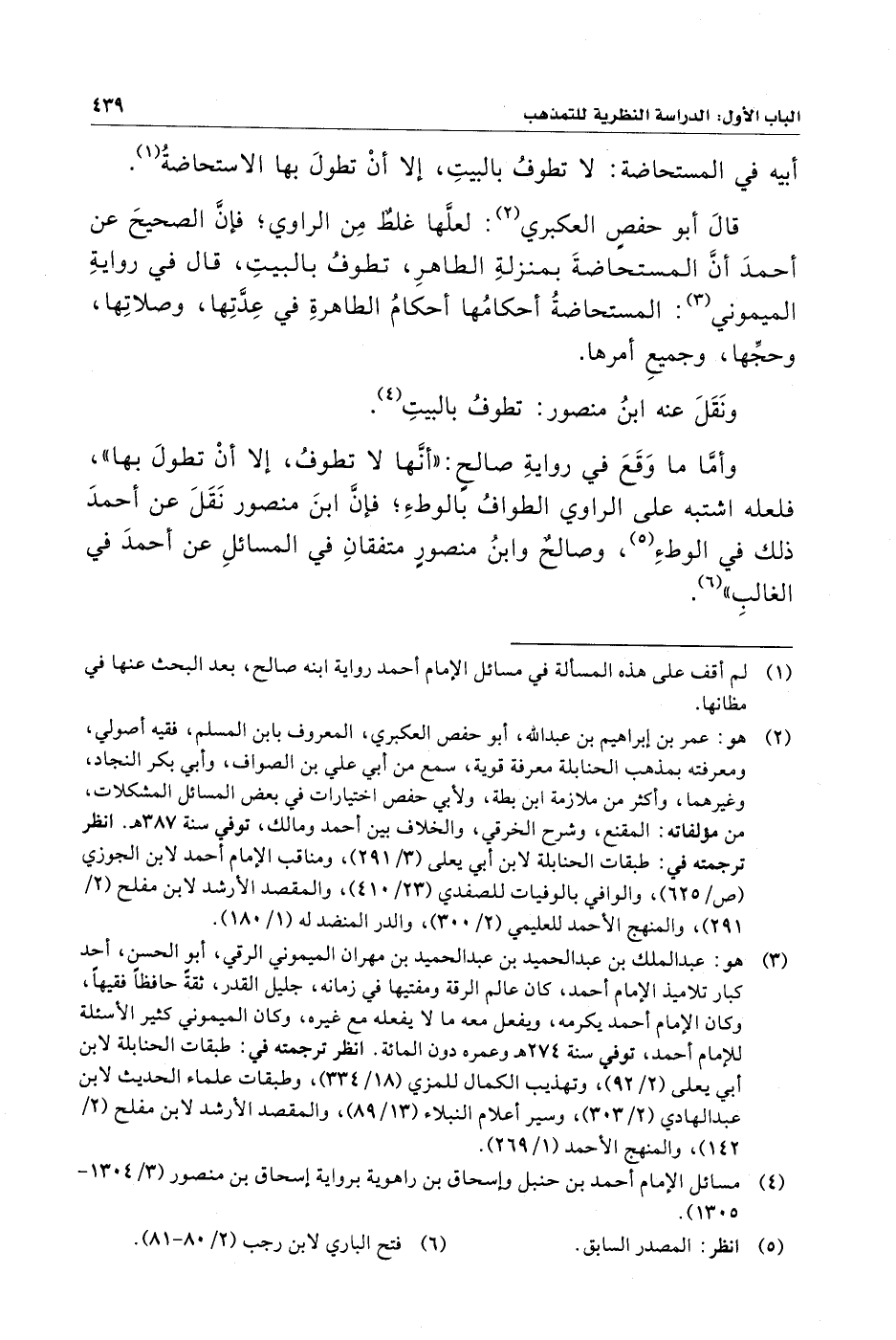 قالَ أبو حفصٍ العكبري (¬٢): لعلَّها غلطٌ مِن الراوي؛ فإنَّ الصحيحَ عن أحمدَ أنَّ المستحاضةَ بمنزلةِ الطاهرِ، تطوفُ بالبيتِ، قال في روايةِ الميموني (¬٣): المستحاضةُ أحكامُها أحكامُ الطاهرةِ في عِدَّتِها، وصلاتِها، وحجِّها، وجميعِ أمرها.
