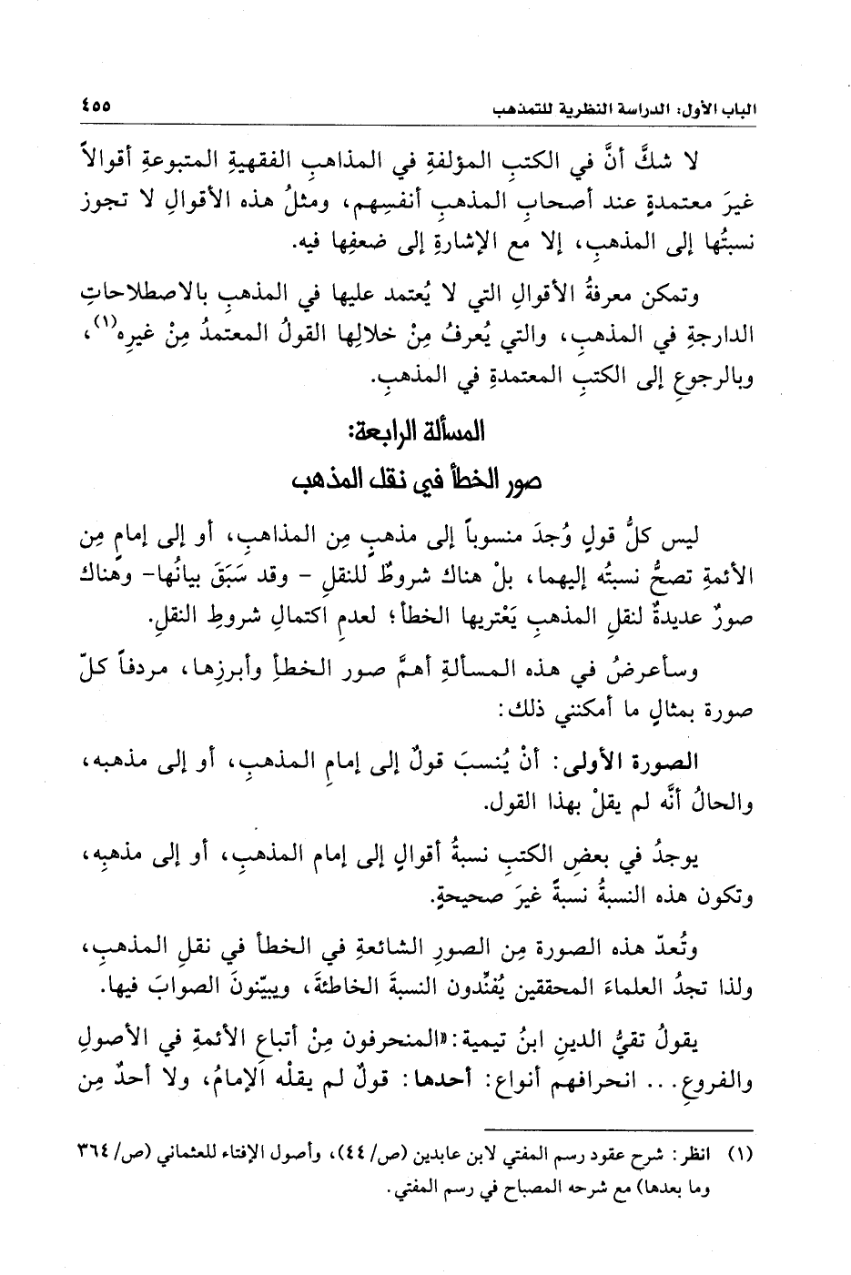 (¬١) انظر: شرح عقود رسم المفتي لابن عابدين (ص/ ٤٤)، وأصول الإفتاء للعثماني (ص/ ٣٦٤ وما بعدها) مع شرحه المصباح في رسم المفتي.