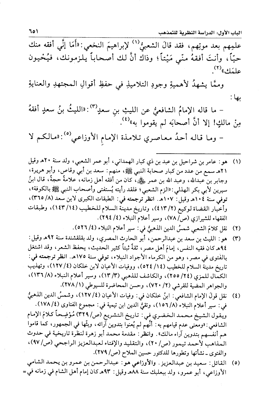 ويقول الشيخ محمد الخضري في: تاريخ التشريع (ص/ ٣٢٩) مُوْضِحًا كلامَ الإمام الشافعي: "ومعنى عدم قيامهم به: أنَّهم لم يُعنوا بتدوين آرائه، وبثّها في الجمهور، كما قاموا هم أنفسهم بتدوين آراء مالك". وانظر: مقدمة محمد أبو زهرة لنظرة تاريخية في حدوث المذاهب لأحمد تيمور (ص/ ٢٠)، والتقليد والإفتاء لعبد العزيز الراجحي (ص/ ٩٧)، والفتوى - نشأتها وتطورها للدكتور حسين الملاح (ص/ ٢٧٩).