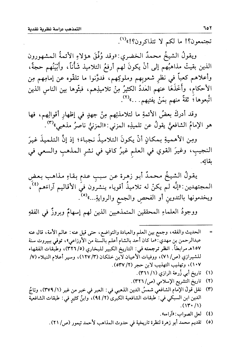 (¬٥) تقديم محمد أبو زهرة لنظرة تاريخية في حدوث المذاهب لأحمد تيمور (ص/ ٢١).