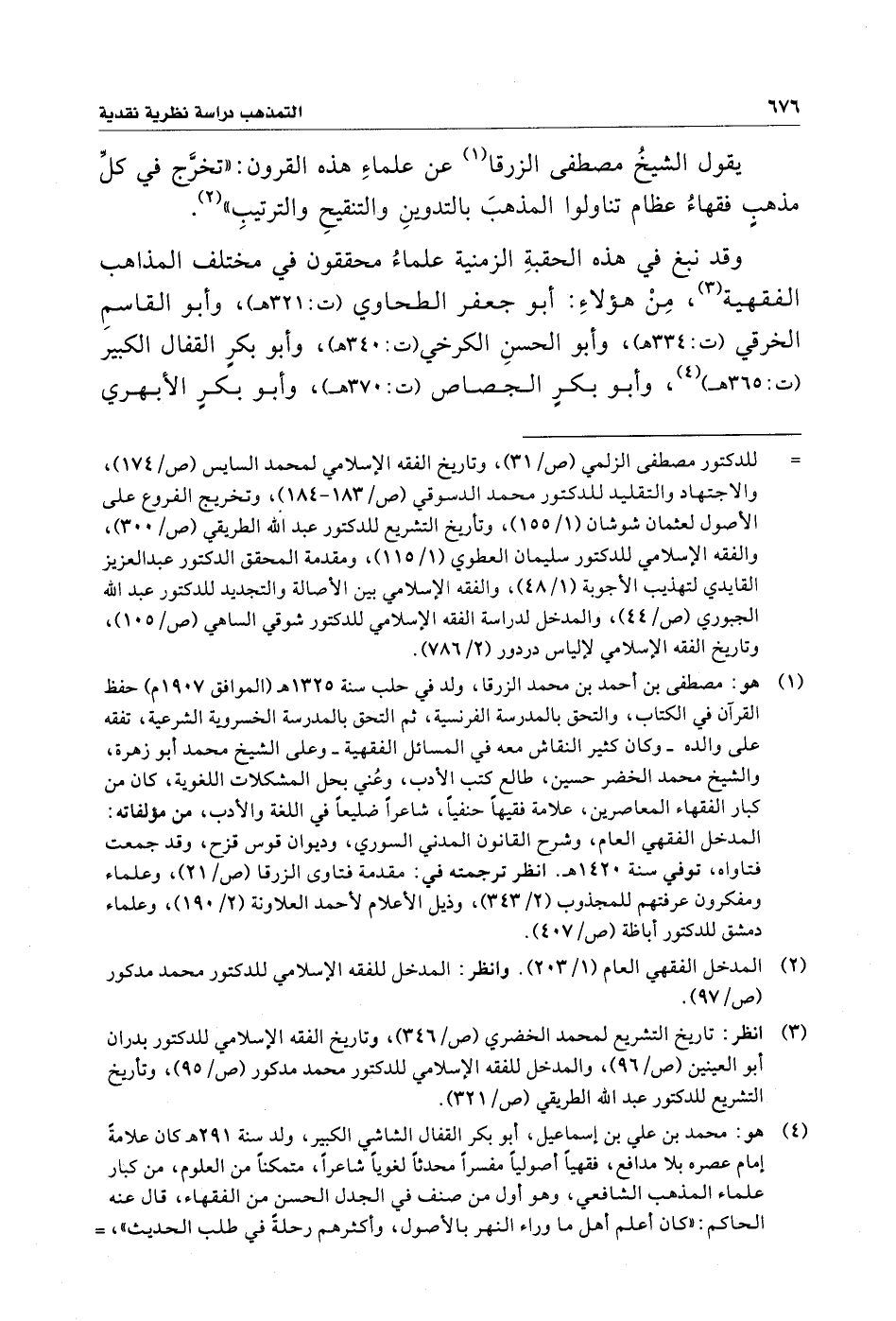 يقول الشيخُ مصطفى الزرقا (¬١) عن علماءِ هذه القرون: "تخرَّج في كلِّ مذهبٍ فقهاءُ عظام تناولوا المذهبَ بالتدوينِ والتنقيحِ والترتيبِ" (¬٢).