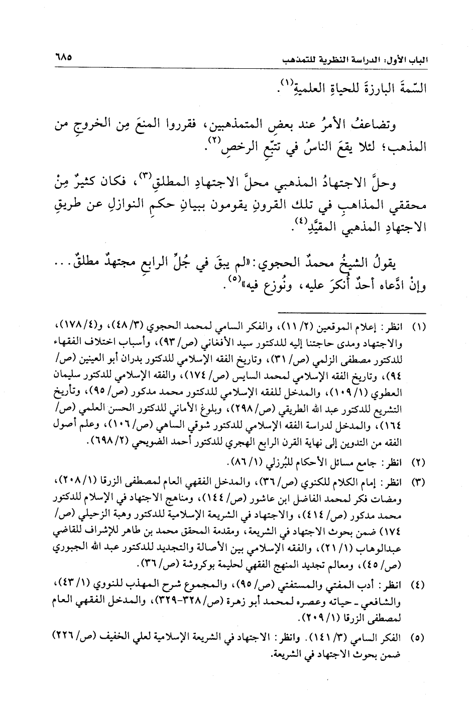 (¬٣) انظر: إمام الكلام للكنوي (ص/ ٣٦)، والمدخل الفقهي العام لمصطفى الزرقا (١/ ٢٠٨)، ومضات فكر لمحمد الفاضل بن عاشور (ص/ ١٤٤)، ومناهج الاجتهاد في الإسلام للدكتور محمد مدكور (ص/ ٤١٤)، والاجتهاد في الشريعة الإسلامية للدكتور وهبة الزحيلي (ص/ ١٧٤) ضمن بحوث الاجتهاد في الشريعة، ومقدمة المحقق محمد بن طاهر للإشراف للقاضي عبد الوهاب (١/ ٢١)، والفقه الإسلامي بين الأصالة والتجديد للدكتور عبد الله الجبوري (ص/ ٤٥)، ومعالم تجديد المنهج الفقهي لحليمة بوكروشة (ص/ ٣٦).