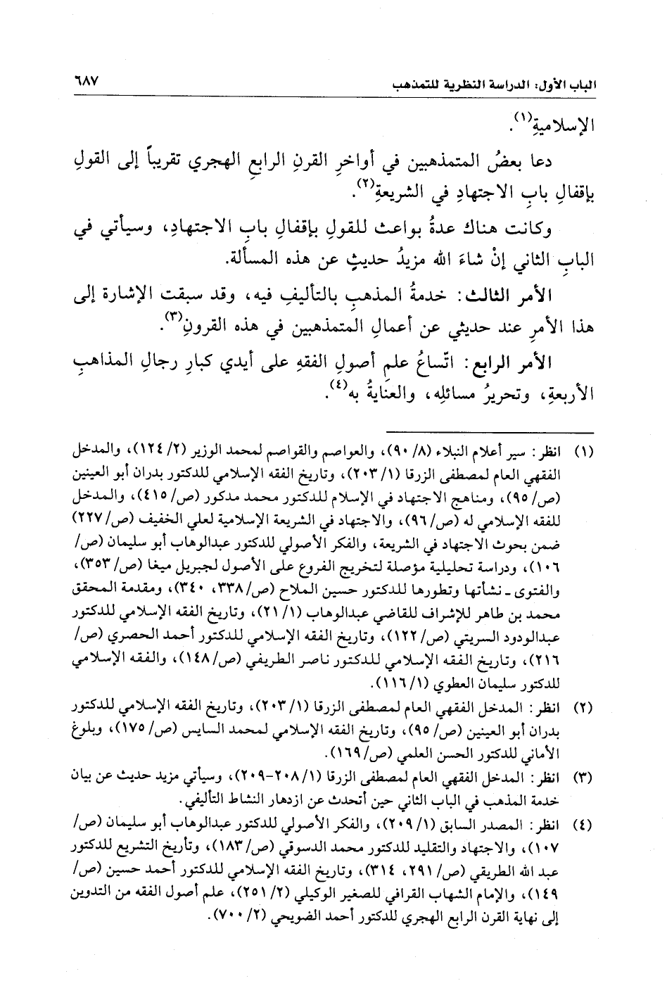 (¬٣) انظر: المدخل الفقهي العام لمصطفى الزرقا (١/ ٢٠٨ - ٢٠٩)، وسيأتي مزيد حديث عن بيان خدمة المذهب في الباب الثاني حين أتحدث عن ازدهار النشاط التأليفي.