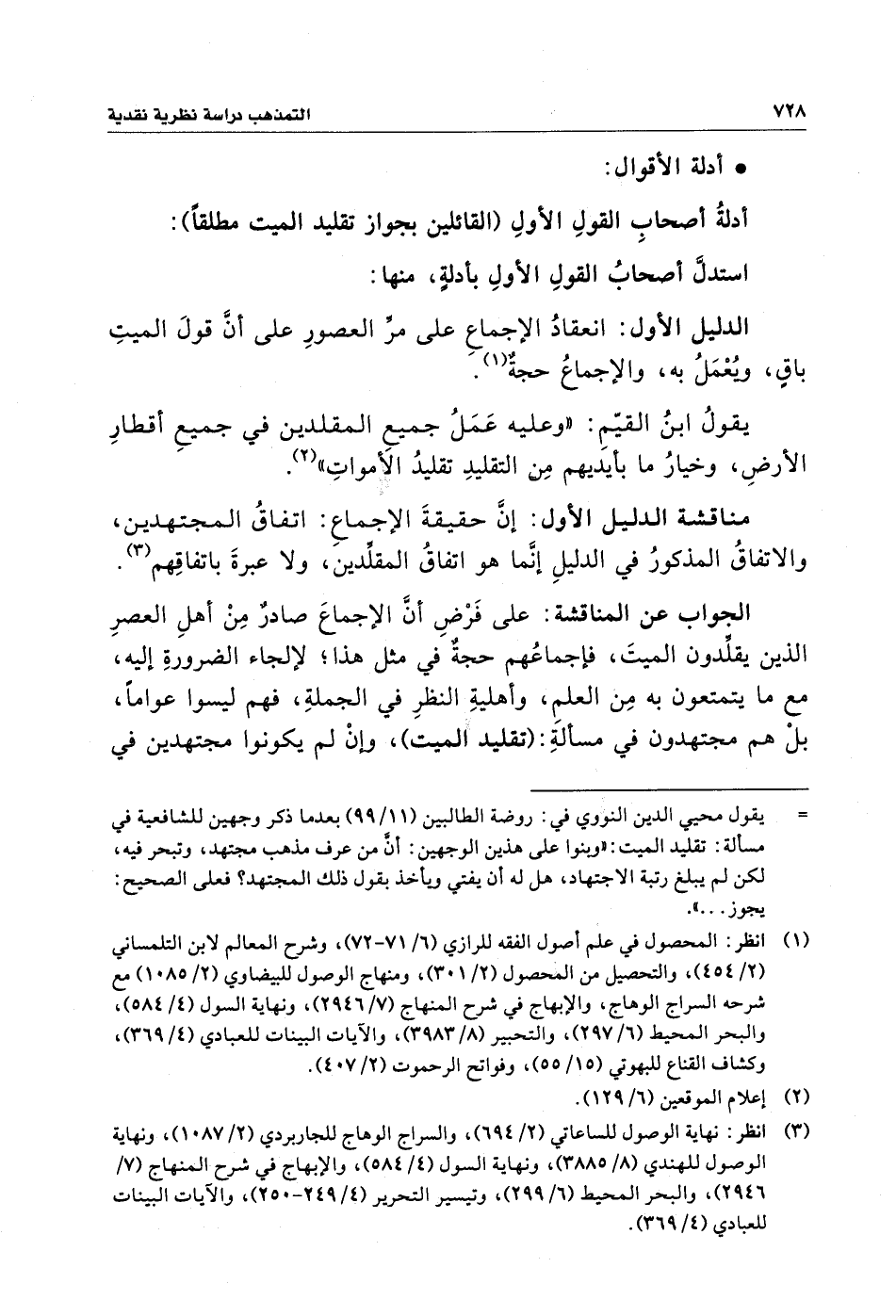 يقولُ ابنُ القيِّمِ: "وعليه عَمَلُ جميعِ المقلدين في جميعِ أقطارِ الأرضِ، وخيارُ ما بأيديهم مِن التقليدِ تقليدُ الأمواتِ" (¬٢).