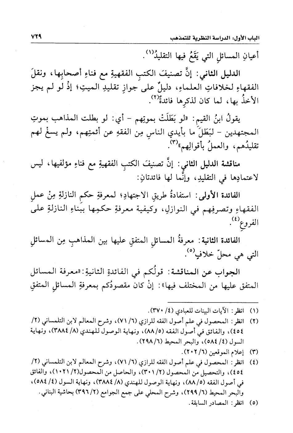 مناقشة الدليل الثاني: إِن تصنيفَ الكتبِ الفقهيةِ مع فناءِ مؤلفيها، ليس لاعتمادِها في التقليدِ، وإِنَّما لها فائدتانِ: