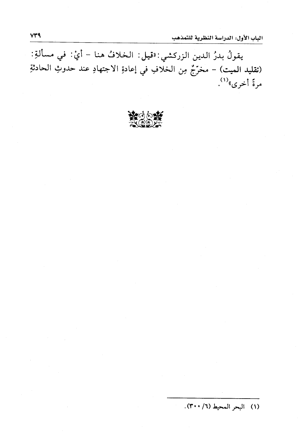 يقولُ بدرُ الدين الزركشي: "قيل: الخلافُ هنا - أيْ: في مسألةِ: (تقليد الميت) - مخرّجٌ مِن الخلافِ في إِعادةِ الاجتهادِ عند حدوثِ الحادثةِ مرةً أخرى" (¬١).