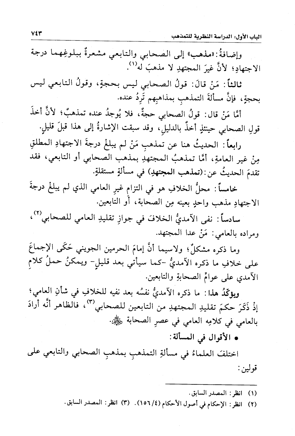 سادسًا: نفى الآمديُّ الخلافَ في جوازِ تقليدِ العامي للصحابي (¬٢)، ومراده بالعامي: مَنْ عدا المجتهد.