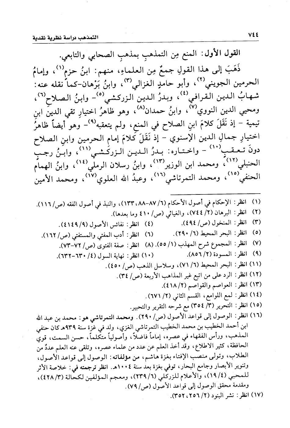 (¬١٦) انظر: الوصول إِلى قواعد الأصول (ص/ ٢٩٠). ومحمد التمرتاشي هو: محمد بن عبد الله بن أحمد الخطيب بن محمد الخطيب التمرتاشي الغزي، ولد في غزة سنة ٩٣٩ هـ كان حنفي المذهب، ورأس الفقهاء في عصره، إِمامًا فاضلًا، وأصوليًا متكلمًا، حسن السمت، قوي الحافظة، كثير الاطلاع، وقد أخذ العلم عن عدد من علماء عصره، وتلقى عنه العلم عددٌ من الطلاب، وتولى منصب الإِفتاء بغزة هاشم، من مؤلفاته: الوصول إِلى قواعد الأصول، وتنوير الأبصار وجامع البحار، توفي بغزة بعد سنة ١٠٠٤ هـ. انظر ترجمته في: خلاصة الأثر للمحبي (٤/ ١٩)، والأعلام للزركلي (٦/ ٢٣٩)، ومعجم المؤلفين لكحالة (٣/ ٤٢٨)، ومقدمة محقق الوصول إِلى قواعد الأصول (ص/ ٧٩).