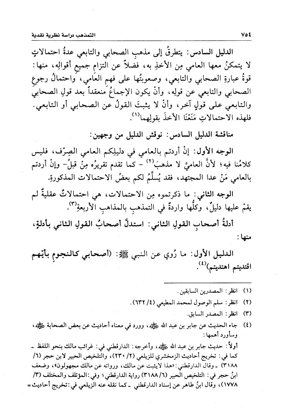 الوجه الثاني: ما ذكرتموه مِن الاحتمالات، هي احتمالاتٌ عقليةٌ لم يقمْ عليها دليلٌ، وكلُّها واردةٌ في التمذهبِ بالمذاهبِ الأربعةِ (¬٣).