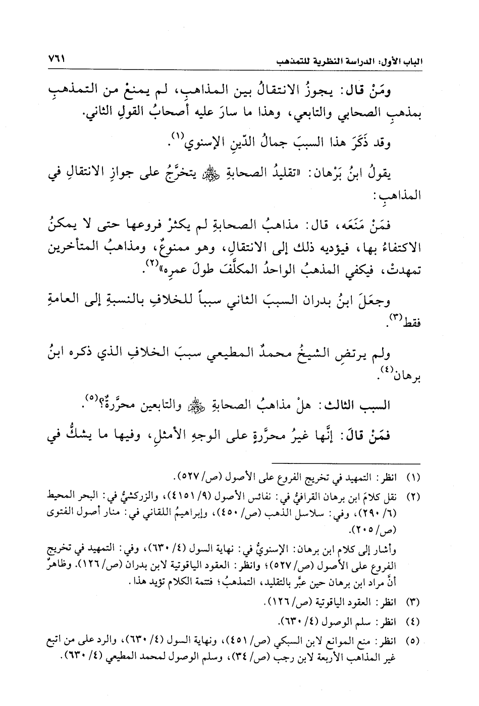 (¬٥) انظر: منع الموانع لابن السبكي (ص/ ٤٥١)، ونهاية السول (٤/ ٦٣٠)، والرد على من اتبع غير المذاهب الأربعة لابن رجب (ص/ ٣٤)، وسلم الوصول لمحمد المطيعي (٤/ ٦٣٠).