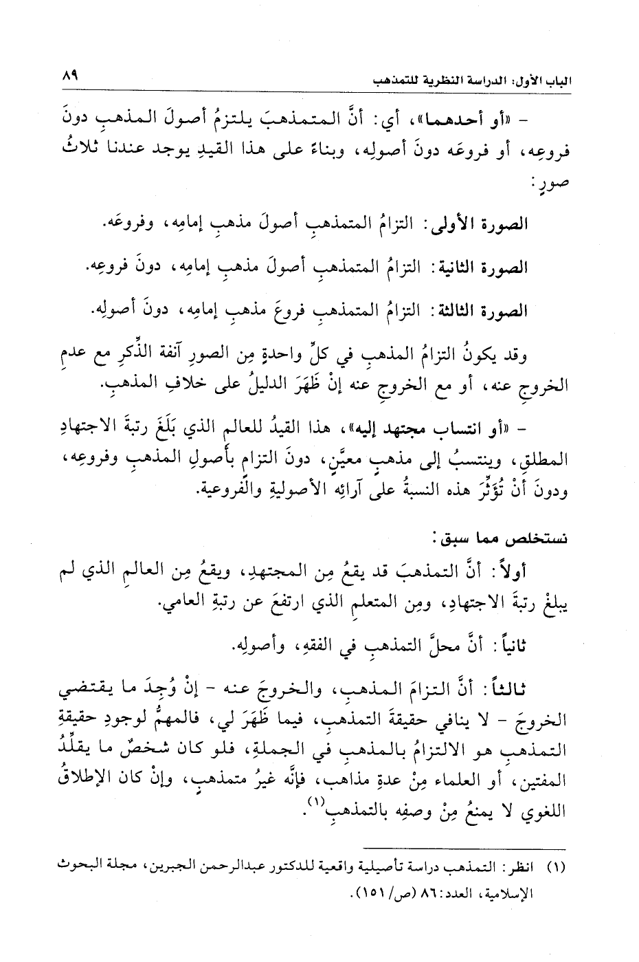 (¬١) انظر: التمذهب دراسة تأصيلية واقعية للدكتور عبد الرَّحمن الجبرين، مجلة البحوث الإِسلامية، العدد: ٨٦ (ص/ ١٥١).