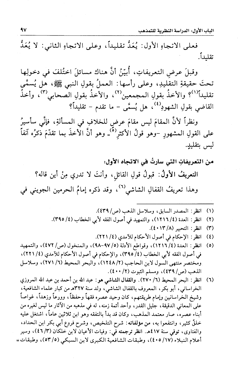 ونظرًا لأنَّ المقامَ ليس مقامَ عرضٍ للخلافِ في المسألةِ، فإنِّي سأسيرُ على القولِ المشهورِ - وهو قولُ الأكثرِ (¬٥) - وهو أنَّ الأخذَ بما تقدّمَ ذكرُه آنفًا ليس بتقليدٍ.