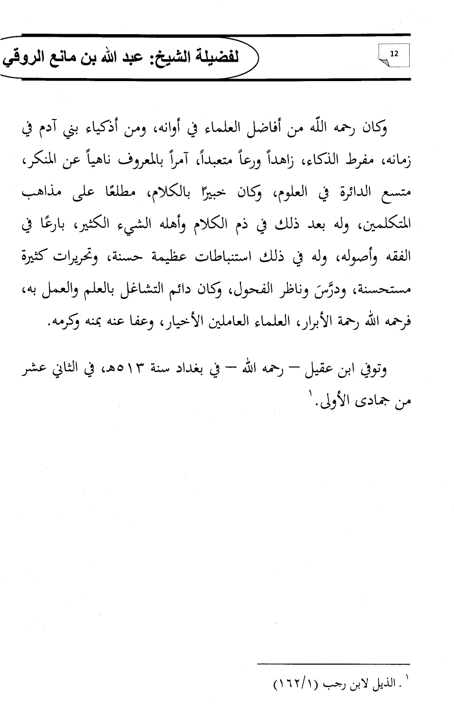 وتوفي ابن عقيل - رحمه الله - في بغداد سنة 513هـ، في الثاني عشر من جمادى الأولى. (¬1)