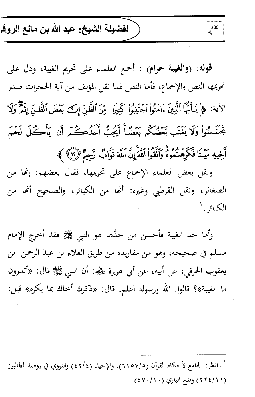 (¬1) انظر: الجامع لأحكام القرآن (5/ 6157). والإحياء (4/ 42) والنووي في روضة الطالبين (11/ 224) وفتح الباري (10/ 470).
