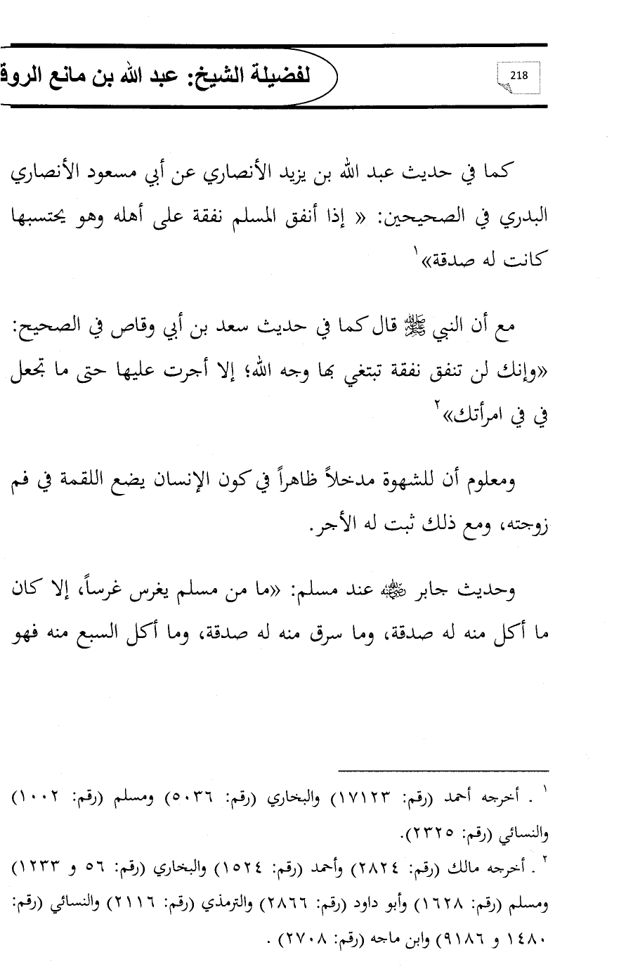 (¬2) أخرجه مالك (رقم: 2824) وأحمد (رقم: 1524) والبخاري (رقم: 56 و 1233) ومسلم (رقم: 1628) وأبو داود (رقم: 2866) والترمذي (رقم: 2116) والنسائي (رقم: 1480 و 9186) وابن ماجه (رقم: 2708).