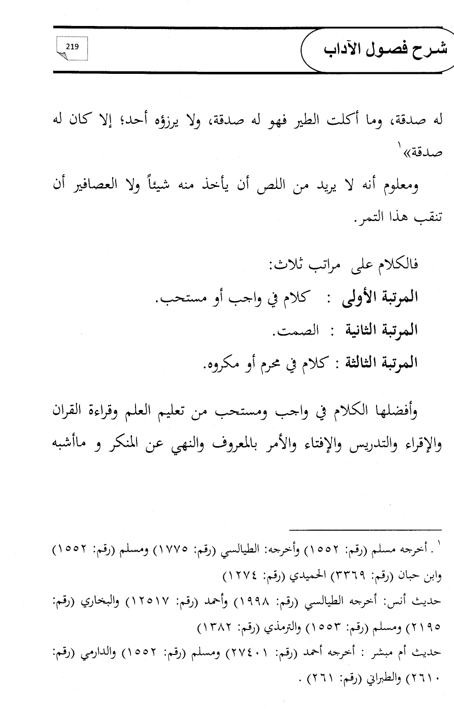 المرتبة الأولى: كلام في واجب أو مستحب.