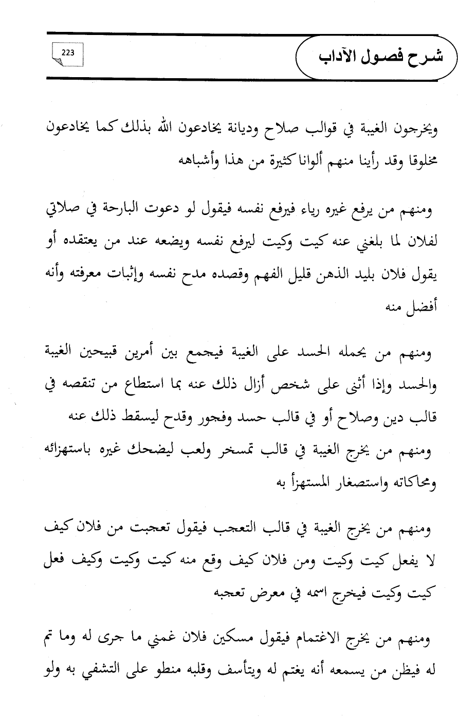 ومنهم من يخرج الغيبة في قالب تمسخر ولعب ليضحك غيره باستهزائه ومحاكاته واستصغار المستهزأ به