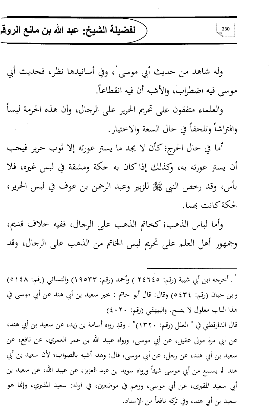 (¬1) أخرجه ابن أبي شيبة (رقم: 24645) وأحمد (رقم: 19533) والنسائي (رقم: 5148) وابن حبان (رقم: 5434) وقال: قال أبو حاتم: خبر سعيد بن أبي هند عن أبي موسى في هذا الباب معلول لا يصح. والبيهقي (رقم: 4020)