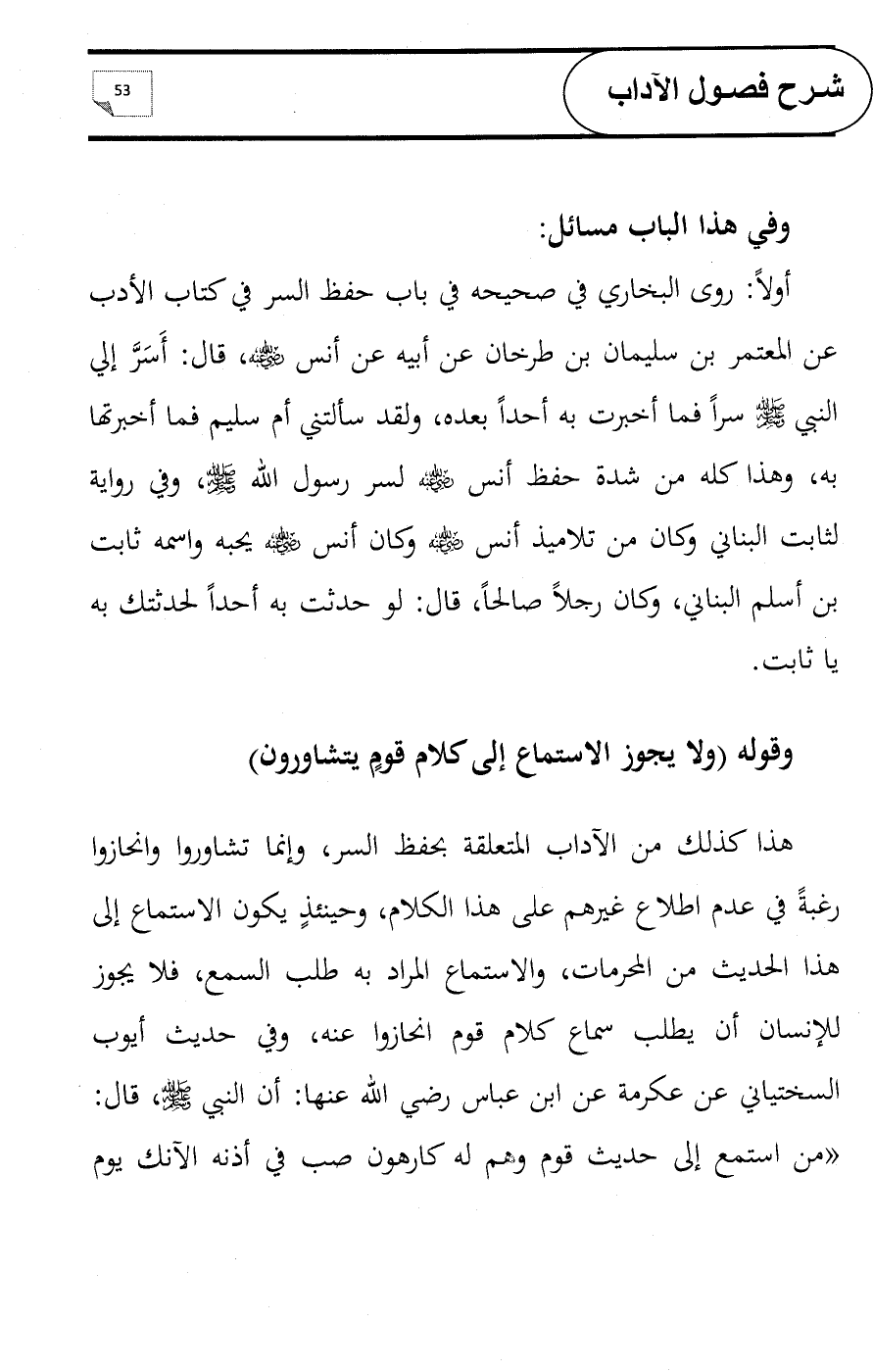 وقوله (ولا يجوز الاستماع إلى كلام قومٍ يتشاورون)