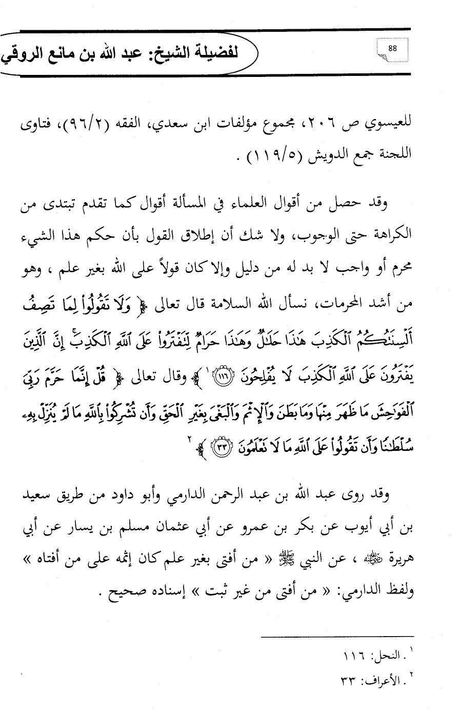 للعيسوي ص 206، مجموع مؤلفات ابن سعدي، الفقه (2/ 96)، فتاوى اللجنة جمع الدويش (5/ 119).