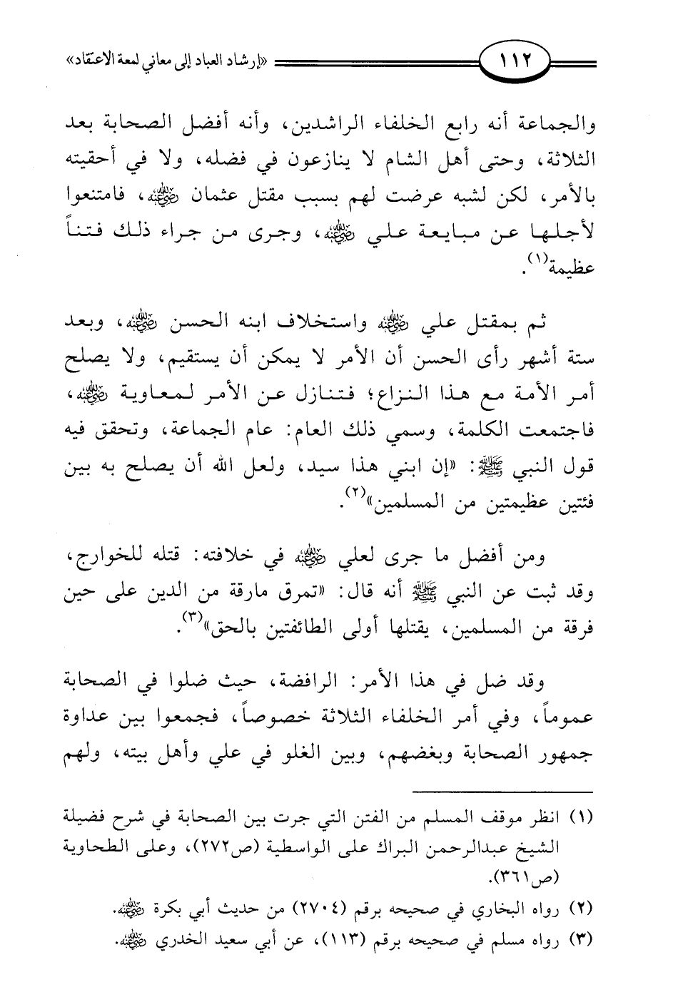 (¬1) انظر موقف المسلم من الفتن التي جرت بين الصحابة في شرح فضيلة الشيخ عبدالرحمن البراك على الواسطية (ص 272)، وعلى الطحاوية (ص 361).