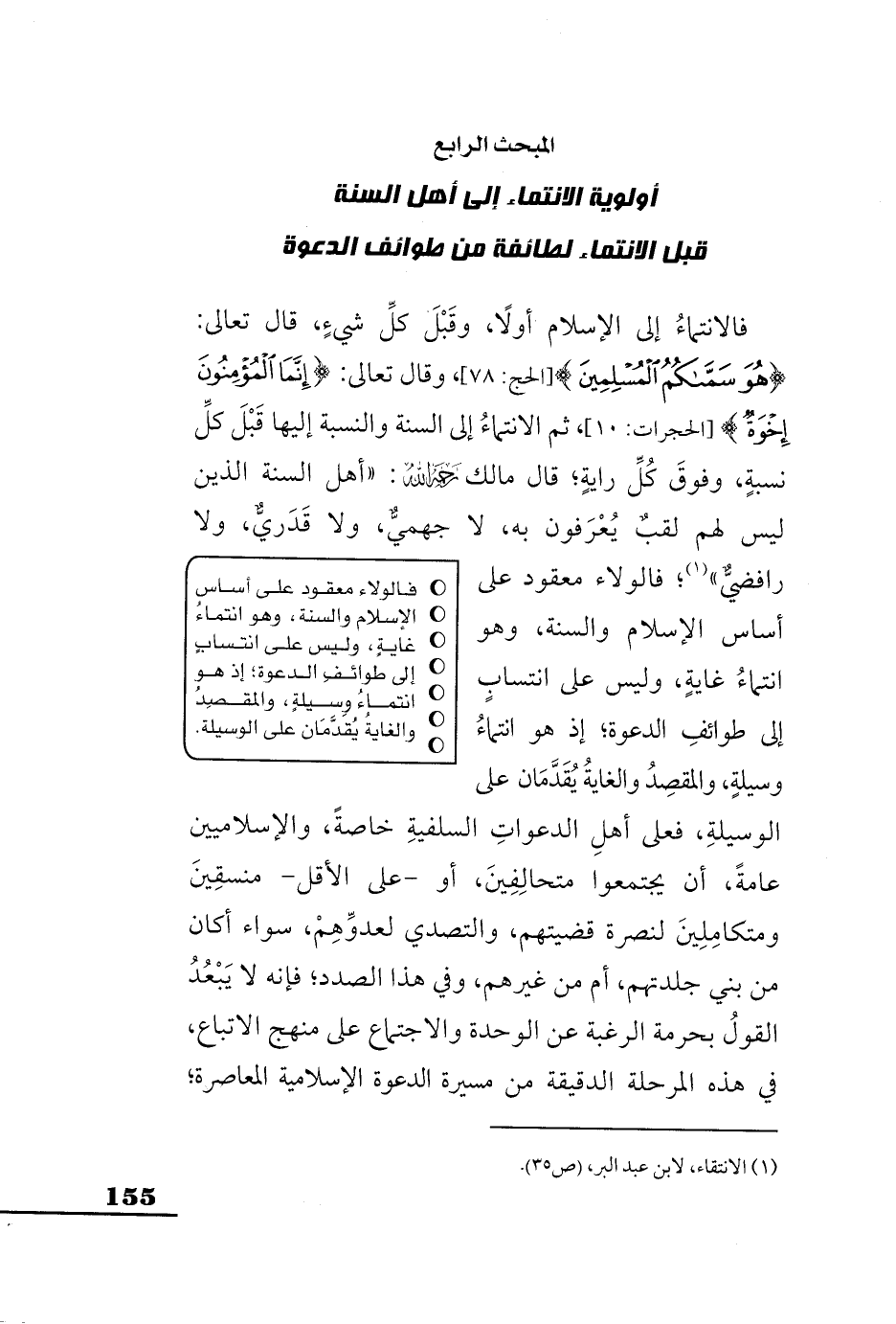 المبحث الرابع أولوية الانتماء إلى أهل السنة قبل الانتماء لطائفة من طوائف الدعوة