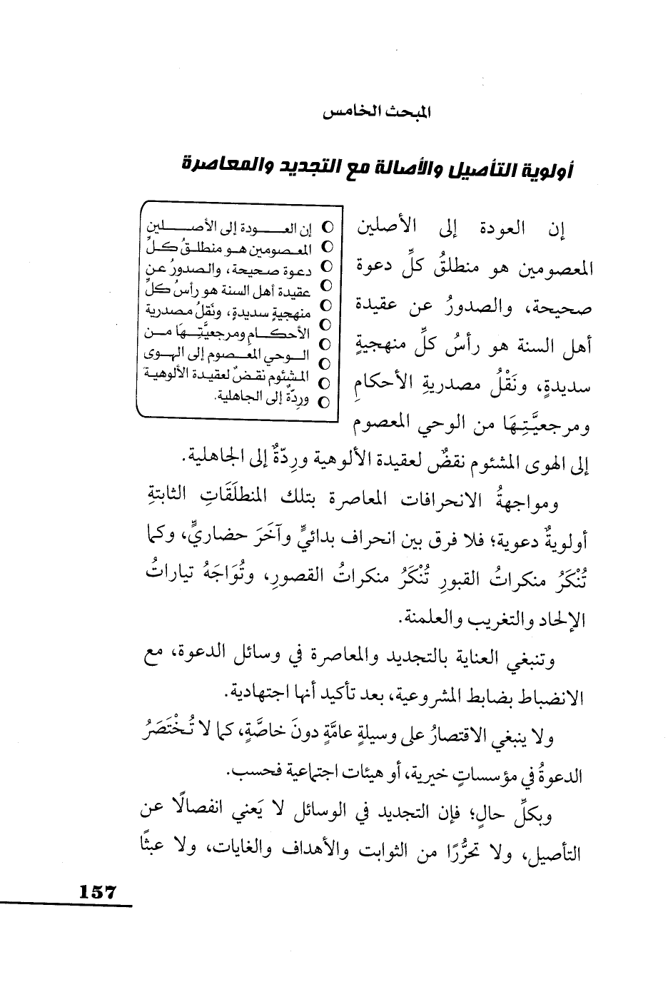 المبحث الخامس أولوية التأصيل والأصاله مع التجديد والمعاصرة