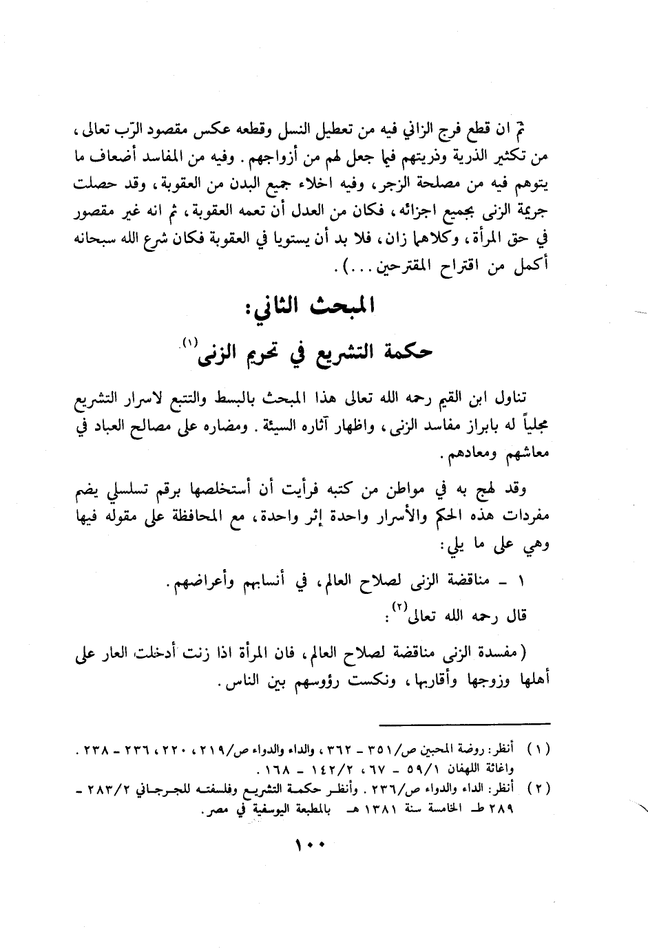 (2) انظر: الداء والدواء ص/236. وانظر حكمة التشريع وفلسفته للجرجاني 2/283 -