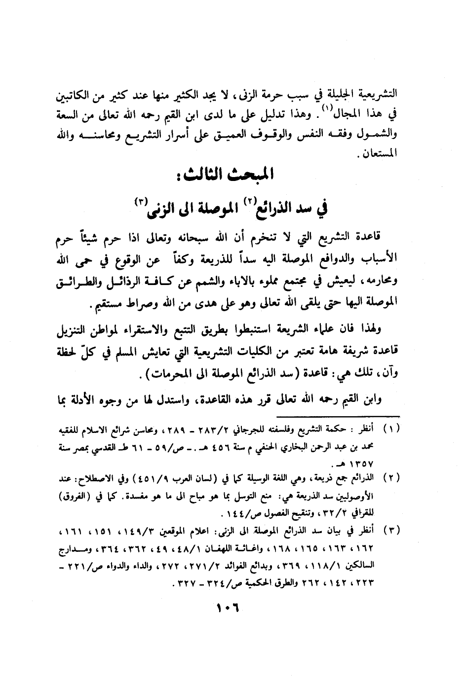 (3) انظر في بيان سد الذرائع الموصلة إلى الزنى: أعلام الموقعين 3/149، 151، 161، 162،163،165، 168، وإغاثة اللهفان 1/48، 49، 362،364، ومدارج السالكين 1/118، 369، وبدائع الفوائد 2/271، 272، والداء والدواء ص/ 221-