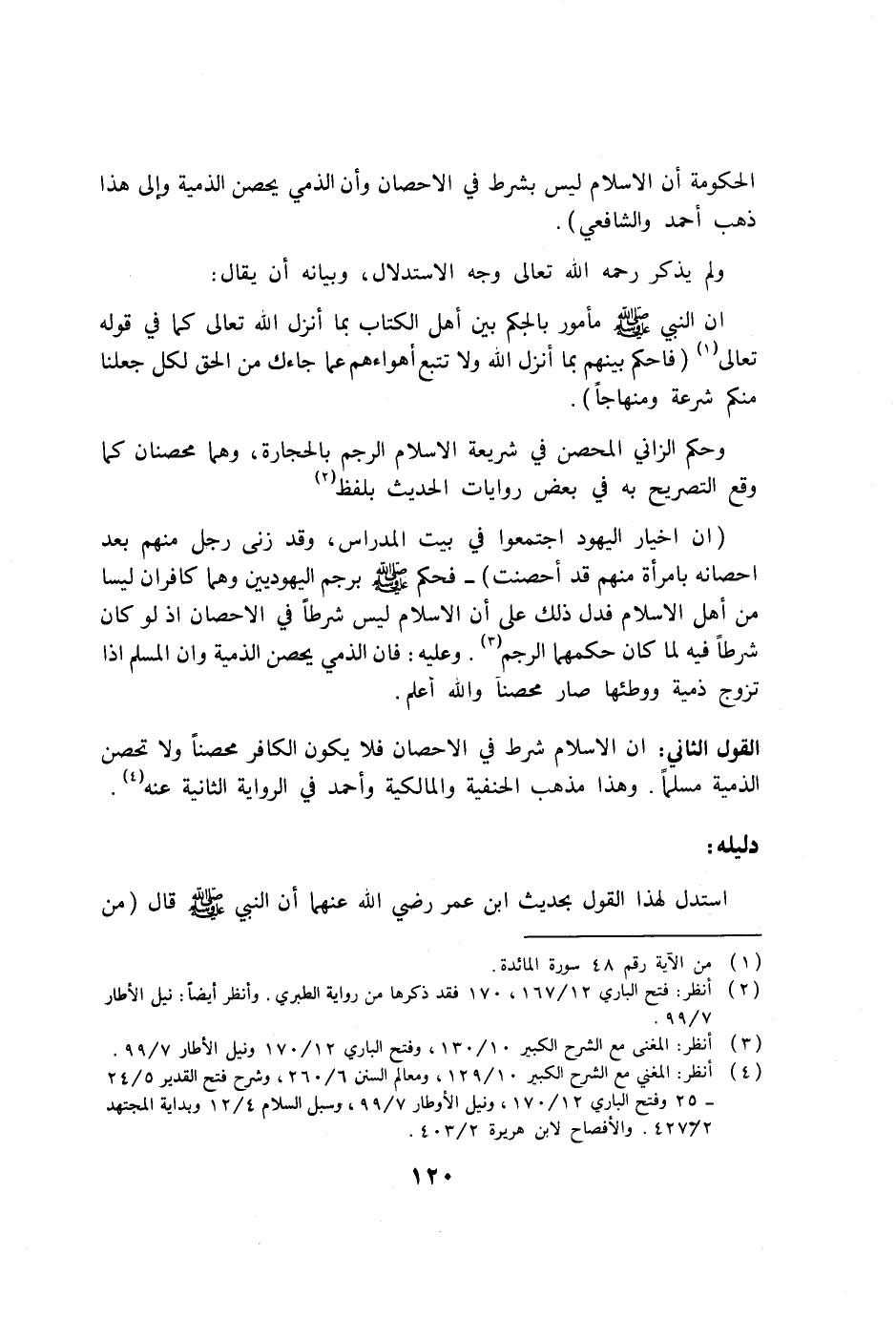 القول الثاني: أن الإسلام شرط في الإحصان فلا يكون الكافر محصناً ولا تحصن الذميهَ مسلماً. وهذا مذهب الحنفية والمالكية وأحمد في الرواية الثانية عنه (4) .