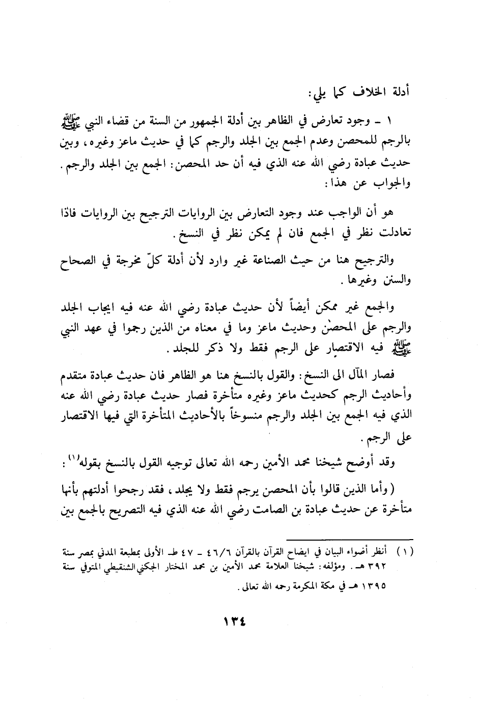 (وأما الذين قالوا بأن المحصن يرجم فقط ولا يجلد، فقد رجحوا أدلتهم بأنها متأخرة عن حديث عبادة بن الصامت رضي الله عنه الذي فيه التصريح بالجمع بين