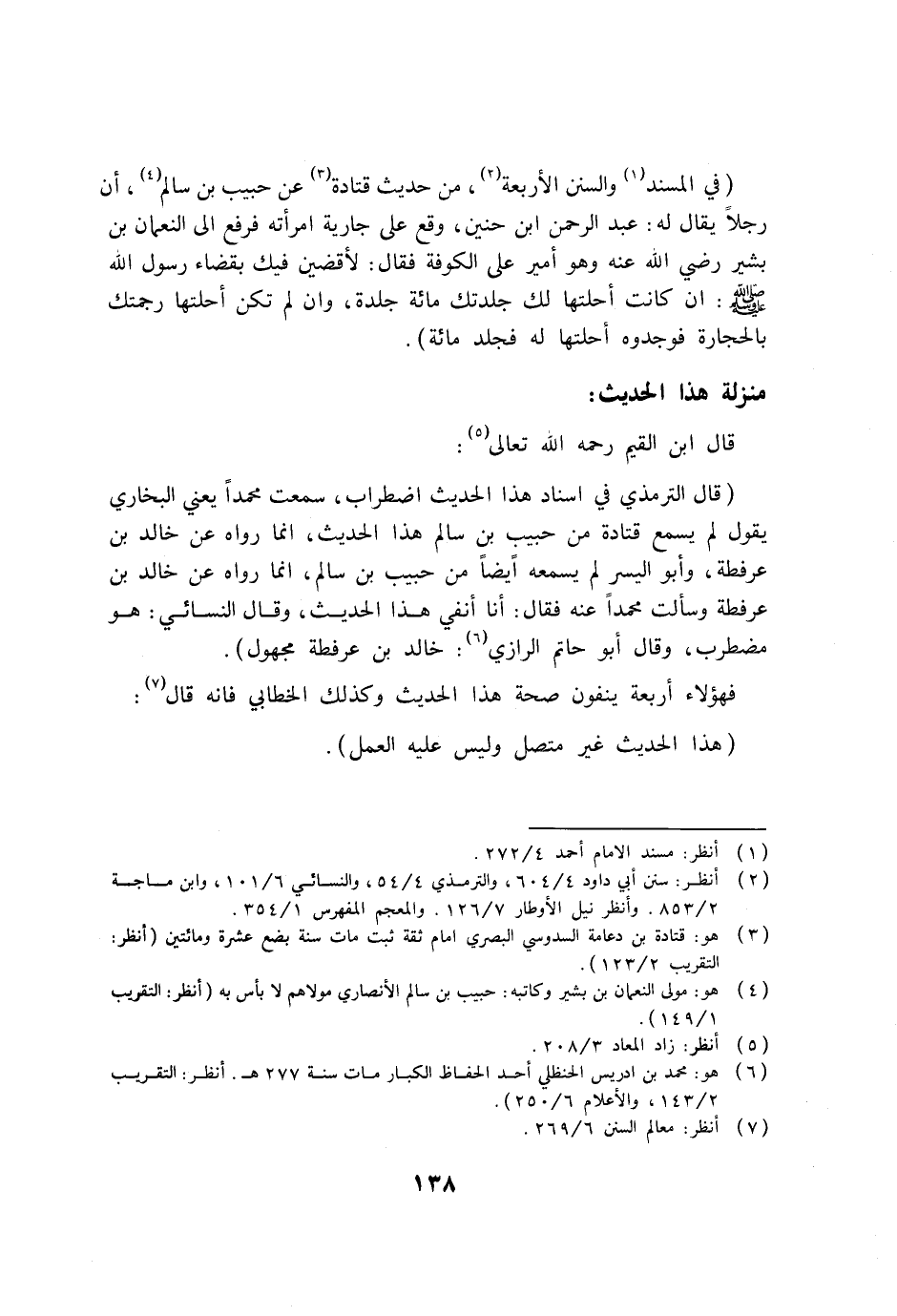(4) هو: مولى النعمان بن بشير وكاتبه: حبيب بن سالم الأنصاري مولاهم لا بأس به (انظر: التقريب 1/149) .