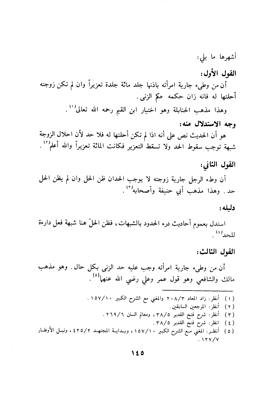 (5) انظر: المغني مع الشرح الكبير 10/157، وبداية المجتهد 2/425، ونيل الأوطار 7/127