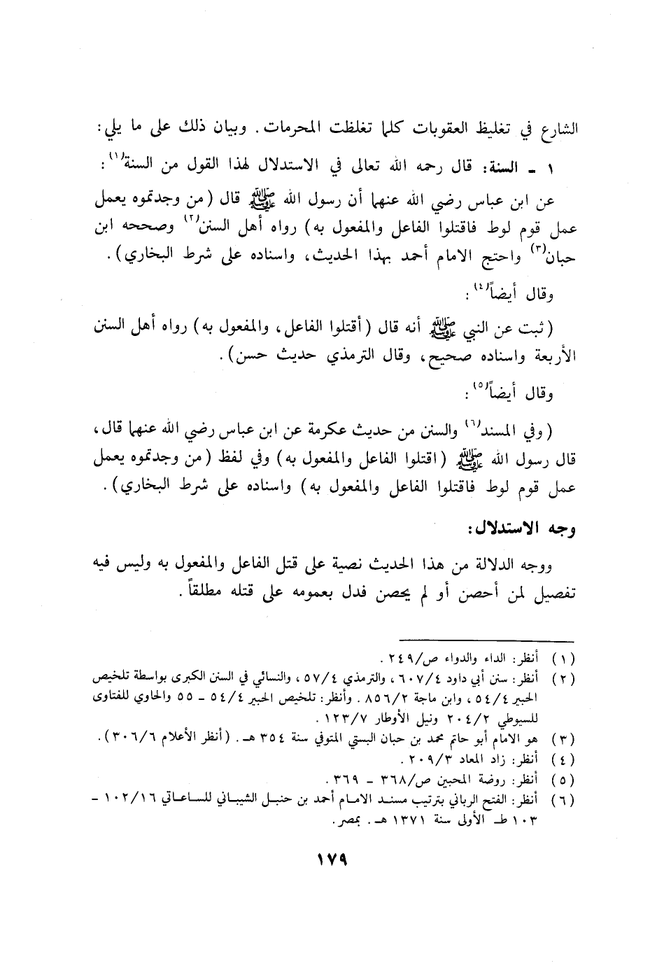 عن ابن عباس رضي الله عنهما أن رسول الله صلى الله عليه وسلم قال (من وجدتموه يعمل عمل قوم لوط فاقتلوا الفاعل والمفعول به) رواه أهل السنن (2) وصححه ابن حبان (3) واحتج الإمام أحمد بهذا الحديث، وإسناده على شرط البخاري) .