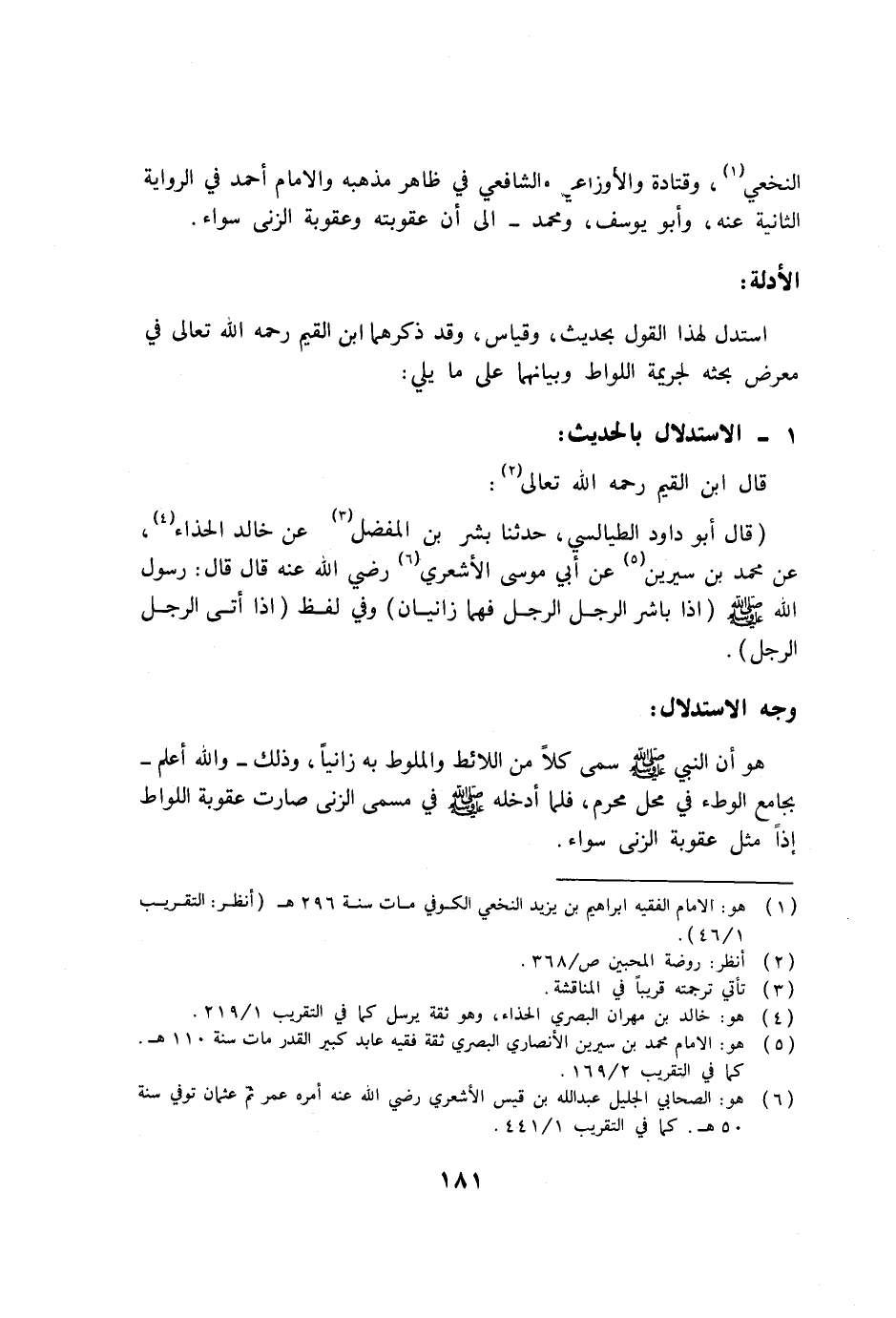 (قال أبو داود الطيالسي، حدثنا بشر بن المفضل (3) عن خالد الحذاء (4) ، عن محمد بن سيرين (5) عن أبي موسى الأشعري (6) رضي الله عنه قال قال: رسول الله صلى الله عليه وسلم (إذا باشر الرجل الرجل فهما زانيان) وفي لفظ (إذا أتى الرجل الرجل) .