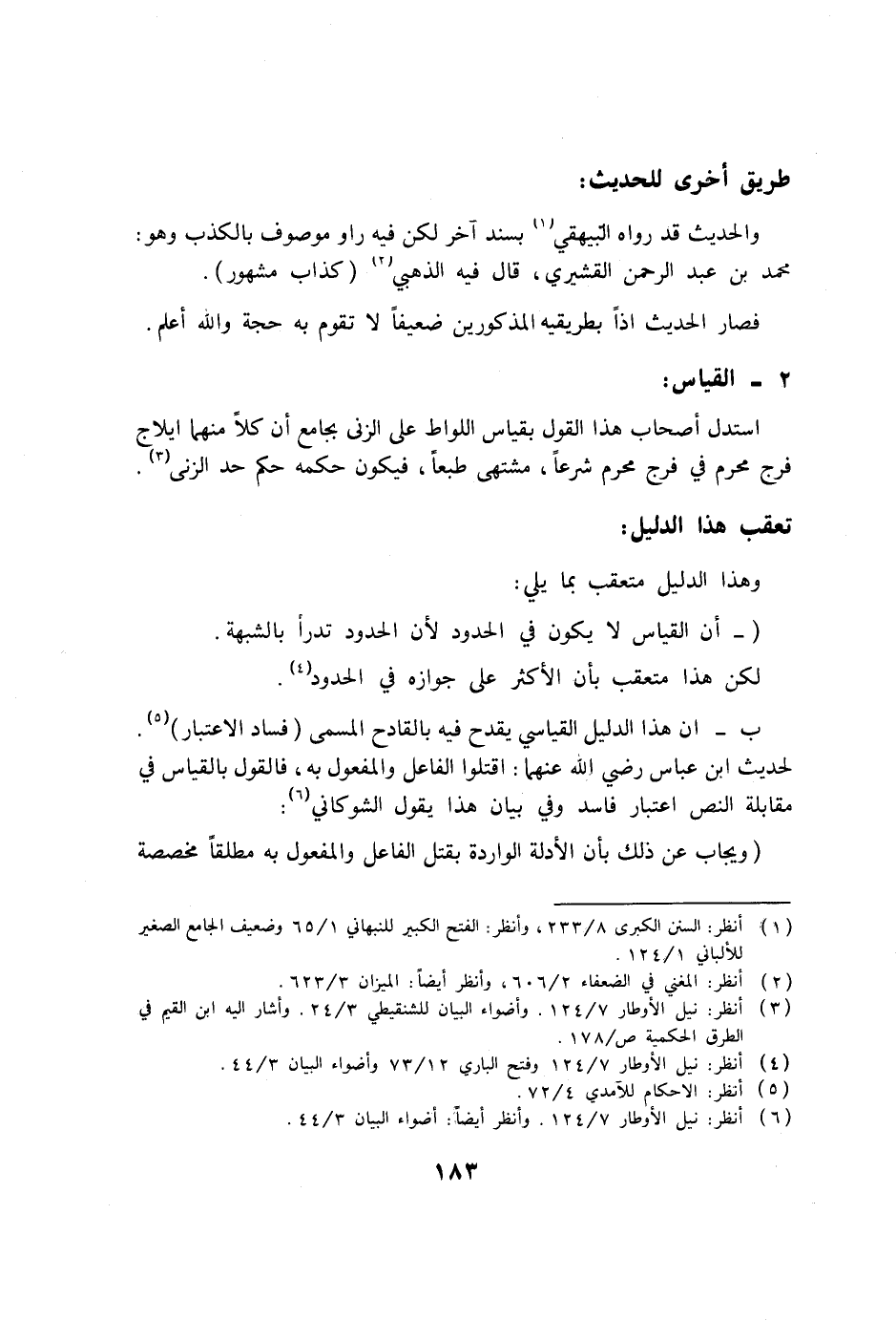 (6) انظر: نيل الأوطار 7/124. وانظر أيضا: أضواء البيان 3/44